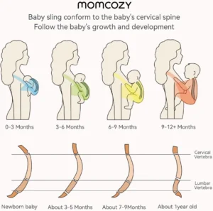 - For babies, Momcozy infant carrier slings allows babies to sit astride, ergonomically, and helps to help babies develop healthy hip bones and spine from 0-1 years old; For moms, the breathable back of the Momcozy baby carrier helps distribute baby’s weight evenly, reducing pain and pressure in the upper back, shoulders, neck or waist; Provides greater comfort for both baby and mother.