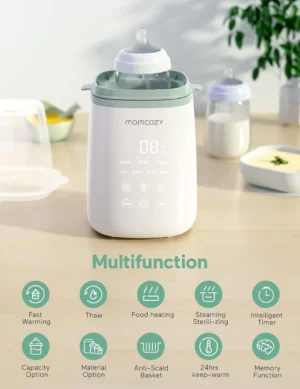 Momcozy Bottle Warmer – Features multiple functions including fast warming, food heating, steaming, thawing, and 24-hour keep-warm mode.