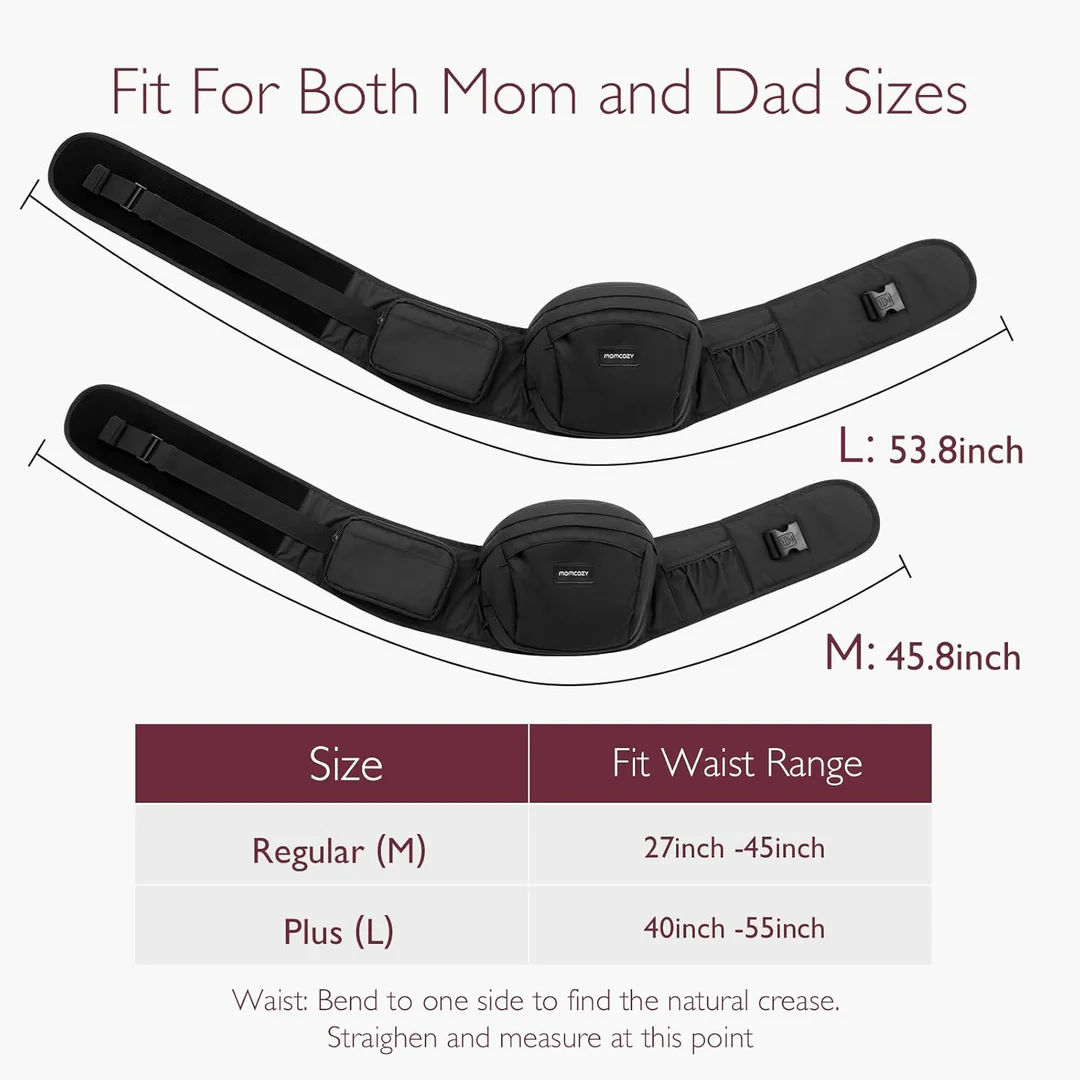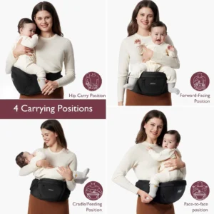 The Momcozy Hip Seat Baby Carrier provides ergonomic support for both baby and parent, featuring a 3D abdominal and lumbar support system that relieves pressure on the back and shoulders. Designed for comfort and versatility, this lightweight carrier offers multiple carrying positions, built-in storage, and a secure, adjustable fit for parents of all sizes.