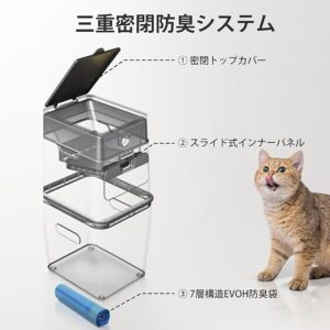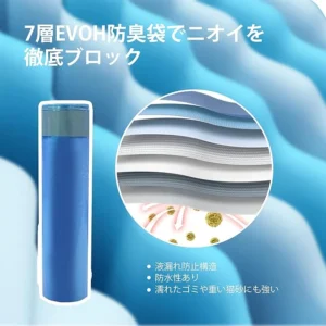 7-layer EVOH bag + triple sealing system (lid, entry port, and inner structure) effectively prevent odor leakage. Keeps your space smelling clean, even with daily use.